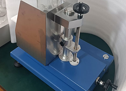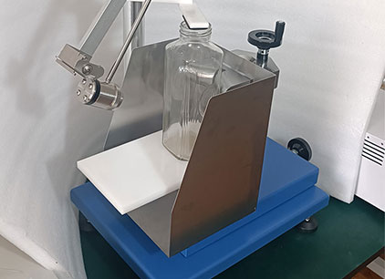 將試樣放置在支撐臺(tái)上,緊靠后支座。上下調(diào)節(jié)支撐臺(tái),將打擊部位調(diào)節(jié)到需要檢測(cè)的部位,再在水平向調(diào)節(jié)支撐臺(tái),使擺處于自由靜止?fàn)顟B(tài)而打擊物則輕微觸及試樣表面。以規(guī)定的沖擊能量重復(fù)打擊瓶身周圍相距約120°的三個(gè)點(diǎn),檢查瓶子有無破壞。